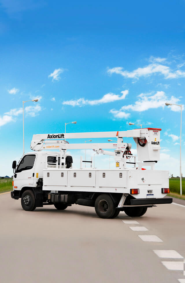 Todos los elevadores AxionLift son ensayados y certificados para trabajar a contacto con líneas vivas. La aislación del brazo inferior del equipo garantiza a la cuadrilla la no conducción de energía al cuerpo de servicio y/o chasis del camión..