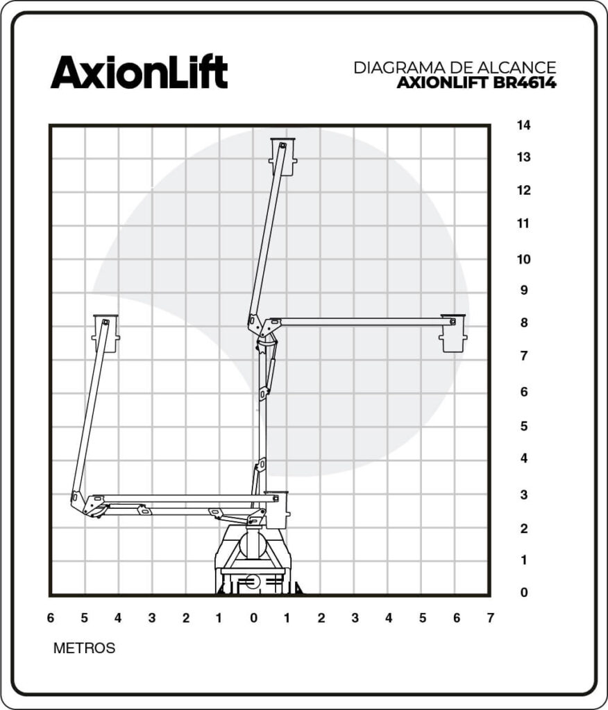 The BR4614 Elevator is an Articulated Elevator that achieves a working height of 14 m and a maximum horizontal reach of 6.5 m. This equipment offers the possibility of reaching 14 m without the need to resort to a heavy or semi-heavy truck. Thanks to its low weight, considering an equipment with this reach, the AxionLift BR4614 lift can be mounted on light trucks, which is translates into a huge cost advantage. In other words, the Elevator Axionlift BR4614 is superiority in 14 m height.