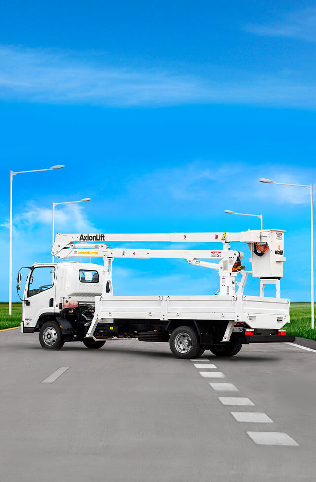 Todos los elevadores AxionLift son ensayados y certificados para trabajar a contacto con líneas vivas. La aislación del brazo inferior del equipo garantiza a la cuadrilla la no conducción de energía al cuerpo de servicio y/o chasis del camión..