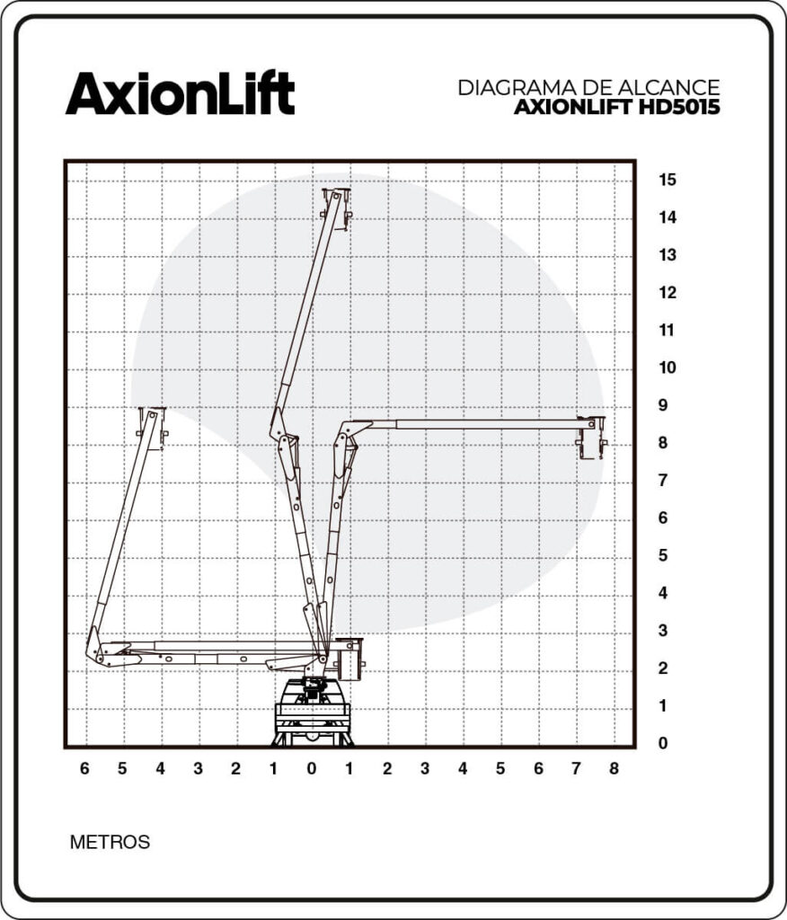 The HD 5015 is an Articulated Aerial Lift that achieves a working height of 15,0 m and a maximum horizontal reach of 8,8 m. The HD 5015 is the reference for all kind of tasks when considering a 15,0 m. working height as includes high performance features such as 69 Kv. Cat. B insulation, material handling of 150 Kg., 2 Single Platforms of 136 Kg. or Single 2-Man platform, platform tilt, boom interlock system, among other options. In other words, the AxionLift HD 5015 is Supreme Performance in this class.