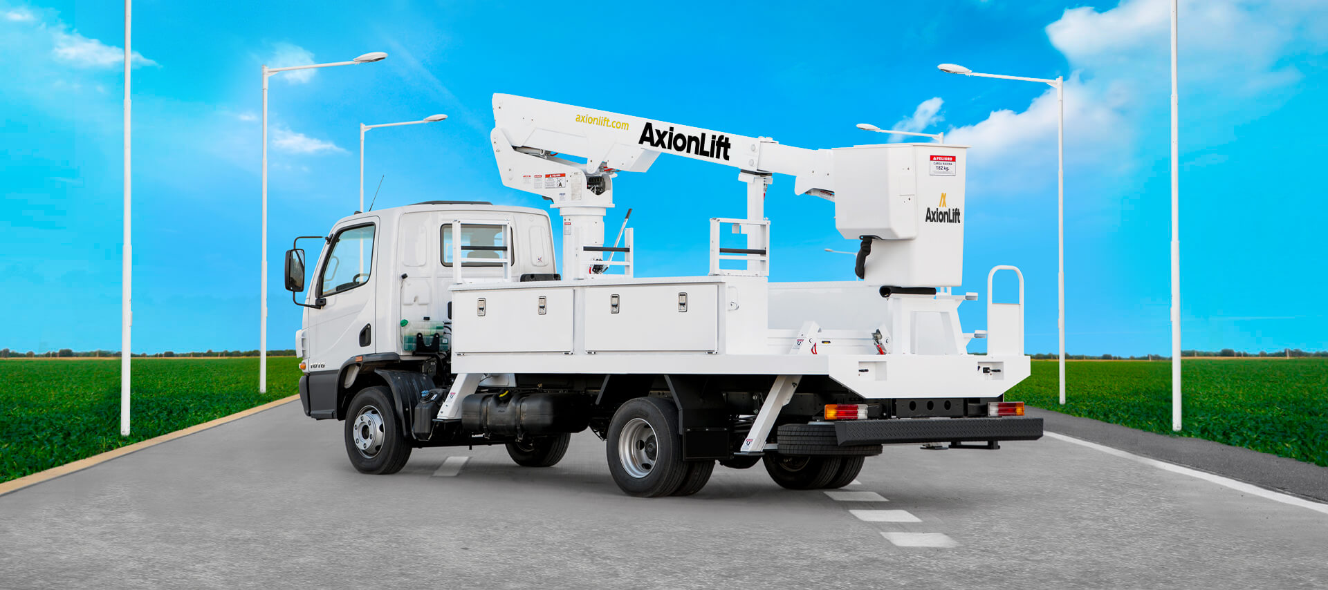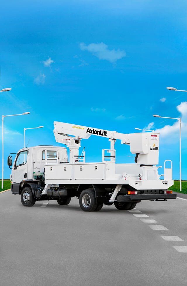 Todos los elevadores AxionLift son ensayados y certificados para trabajar a contacto con líneas vivas. La aislación del brazo inferior del equipo garantiza a la cuadrilla la no conducción de energía al cuerpo de servicio y/o chasis del camión..